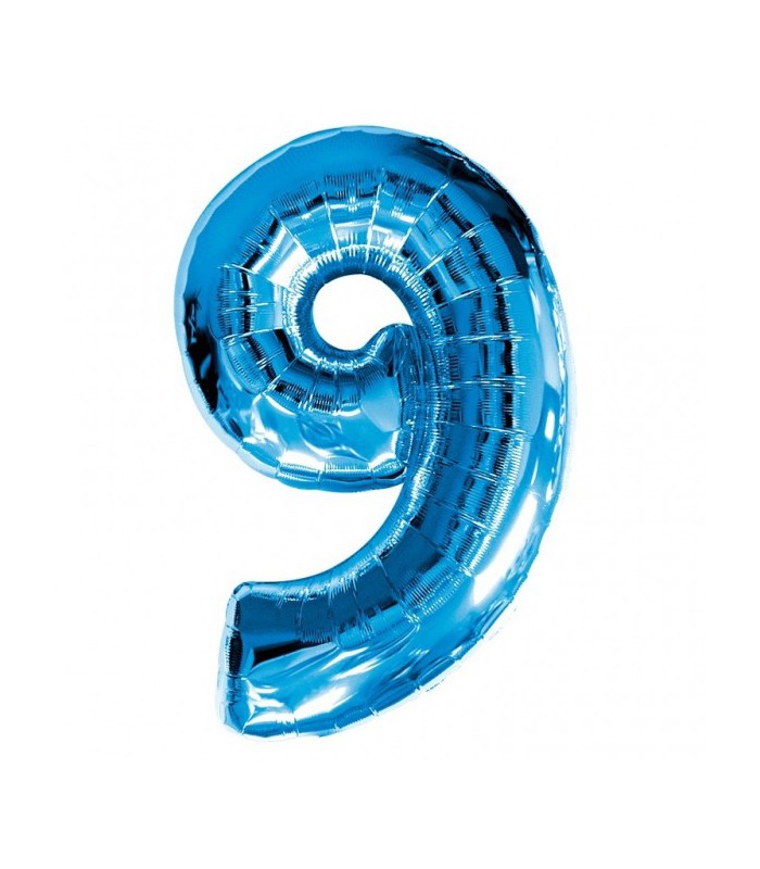 Metallic blauer "Super Shape" Folienballon, der Ihren Saal dekoriert und mit Stil die Nummer 9 anzeigt!