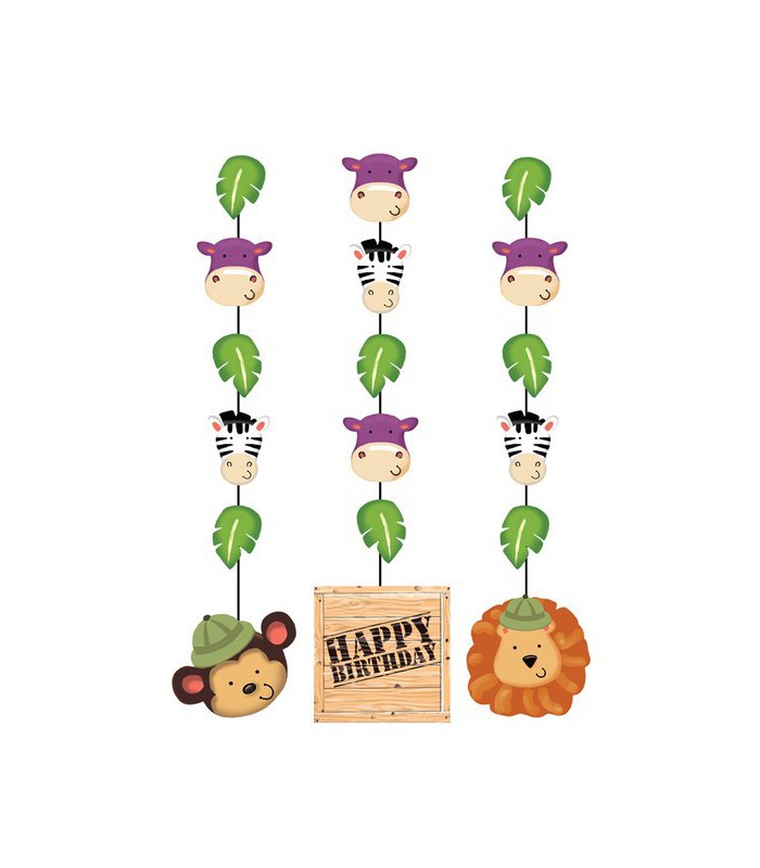 Jede Packung enthält 3 Jungle Abenteuer-Hängedekorationen. Einfach über Ihren Tisch hängen, wo sie mit den Wirbelbewegungen in der Luft auffallen ! Streckt sich aus bis zu 76cm