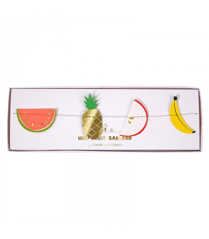 Mit dieser schönen Girlande aus Mini-Früchten von geschmackvollen Farben surfen wir auf einer tropischen Tendenz. Sie wird Ihrer Party Sonnenschein und Vitamine verleihen ! Meri Meri. 4 Meter lange Girlande mit 56 Papierfähnchen.