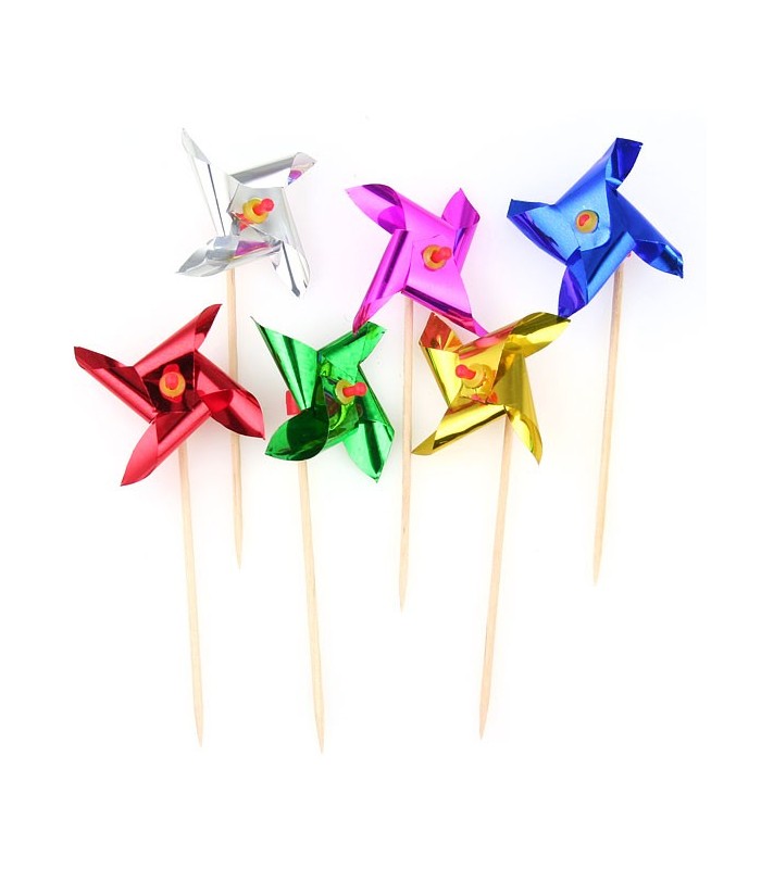 Die Packung enthält 12 Windmühlenförmige Piekser. Einfach in Ihre süßen und salzigen Happen stechen und schon geben Sie Ihrem Tisch eine festliche und farbreiche Note !