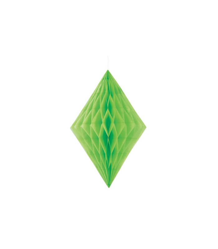 Dieser Wabenpapier-Diamant verleiht Ihrer Partydekoration mit Sanftheit und Leichtigkeit einen Hauch von Glamour ! Verwenden Sie mehrere Diamanten zusammen, indem sie mit verschiedenen Farben oder mit den anderen Papierdekorationen kombiniert werden. Größe: 34 cm.