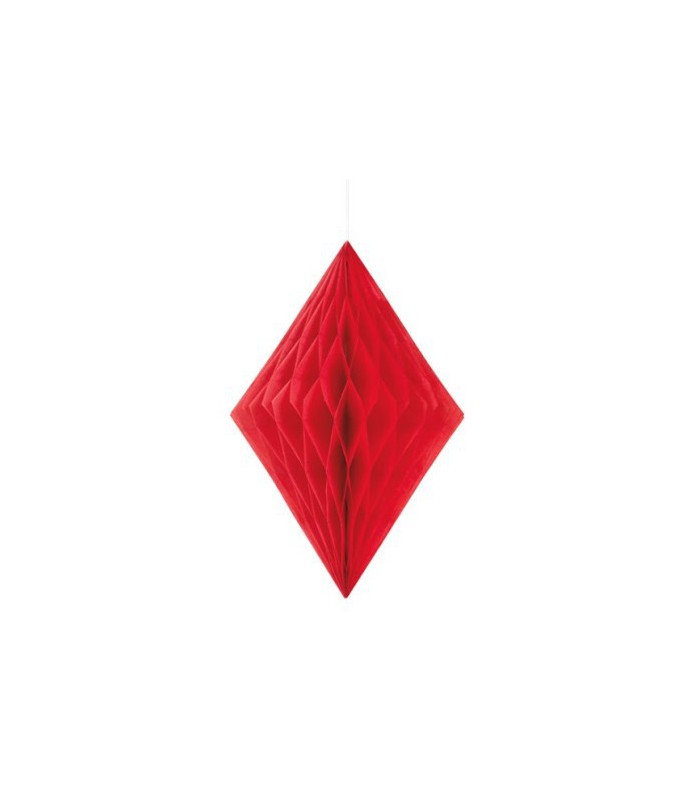 Dieser Wabenpapier-Diamant verleiht Ihrer Partydekoration mit Sanftheit und Leichtigkeit einen Hauch von Glamour ! Verwenden Sie mehrere Diamanten zusammen, indem sie mit verschiedenen Farben oder mit den anderen Papierdekorationen kombiniert werden. Größe: 34 cm.
