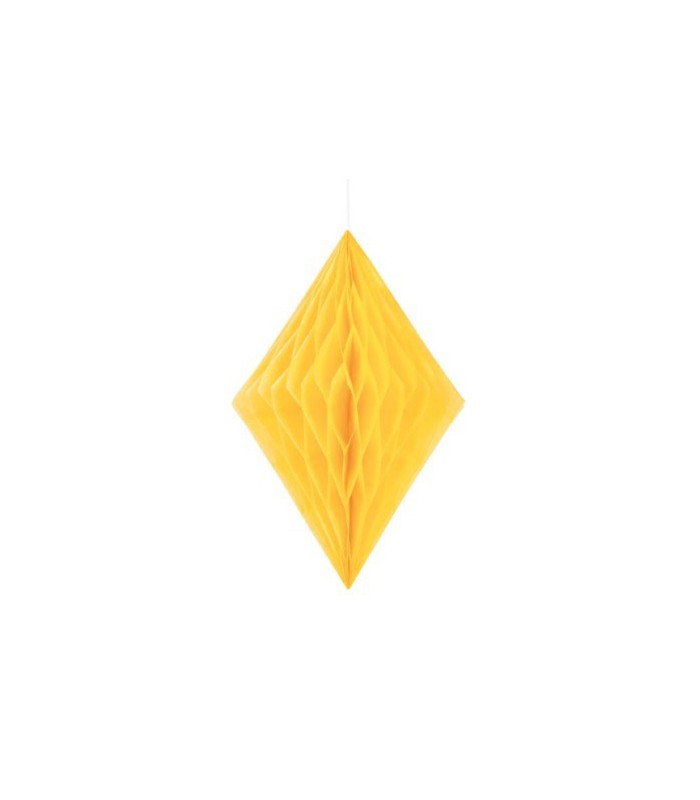 Dieser Wabenpapier-Diamant verleiht Ihrer Partydekoration mit Sanftheit und Leichtigkeit einen Hauch von Glamour ! Verwenden Sie mehrere Diamanten zusammen, indem sie mit verschiedenen Farben oder mit den anderen Papierdekorationen kombiniert werden. Größe: 34 cm.