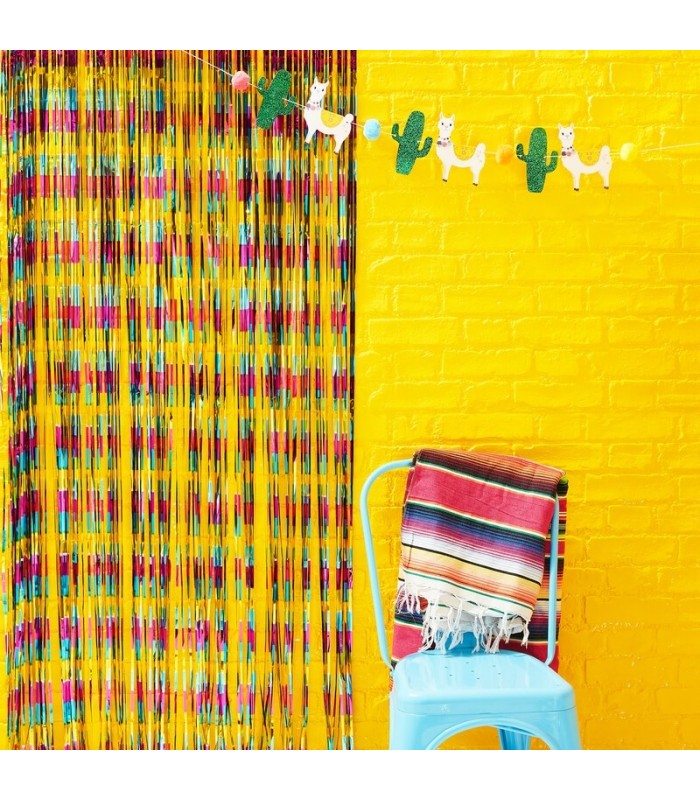Dieser farbenfrohe Fransenvorhang aus Folie wird Ihren Partyraum mit seinen Fiesta-Farben aufhellen und erheitern. Er kann an die Tür oder an die Wand angehängt werden und / oder einen Raum stilvoll abgrenzen. Dieser bunte Folienvorhang wird Ihrer Party einen schicken und festlichen Effekt verleihen!