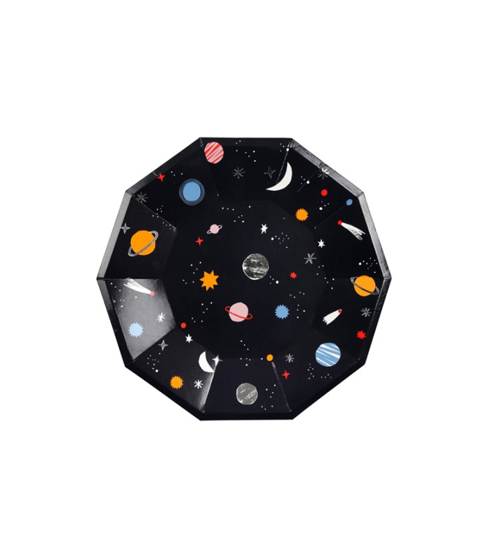 Diese Teller haben die Mission, das Weltall für einen galaktischen Geburtstag zu erobern !