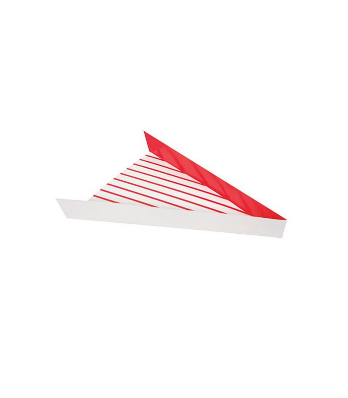 8 Pizza-Pappteller in der Form eines Pizza-Stücks. Perfekt zum Genießen der Pizzas ohne sich zu beschmutzen. Eine lustige Art, Ihre Pizzas während der Partys zu servieren!