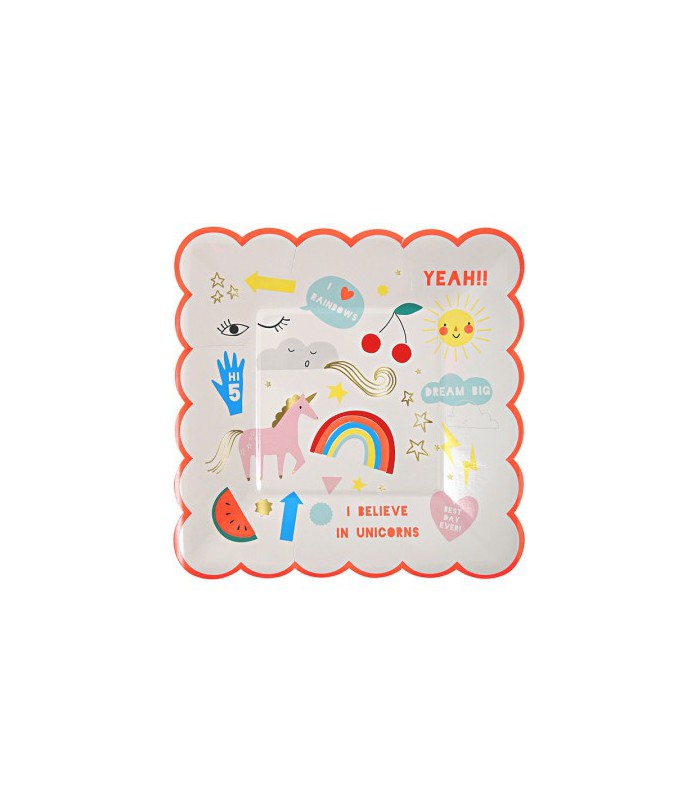 DiePackung enthält 8 Kuchenteller von unserem Thema Einhorn. Durchmesser : 17 cm.