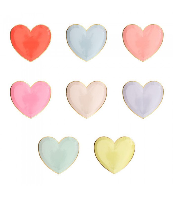 Ein geschmackvoller Satz herzförmiger Teller in schönen Pastellfarben und mit einer goldenen Umrandung. Sie werden bei jeder Gelegenheit eine schöne Liebeserklärung sein!