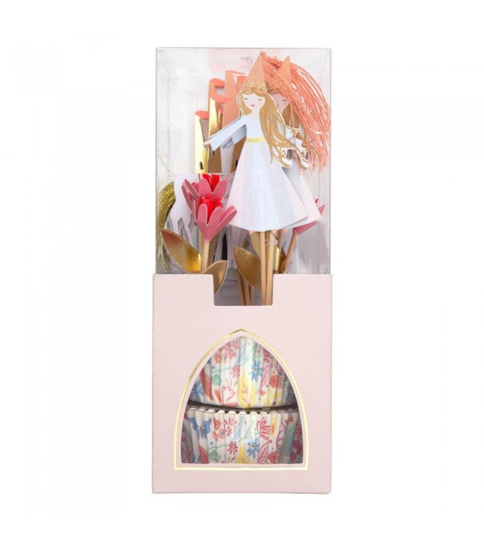 Leckere Minikuchen oder Cupcakes sind unverzichtbar für eine fröhliche Party. Verleihen Sie Ihrer Feier mit diesem zauberhafen Prinzessin-Set einen besonderen Look. Es enthält wunderschön illustrierte Kuchen-Dekorationen und Cupcakes-Hüllen die des Königtums würdig sind!
