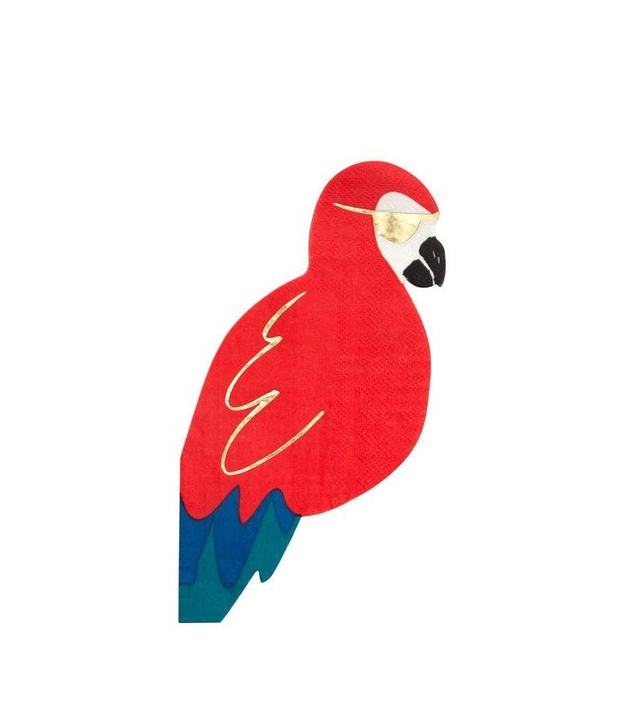 Diese Papagei-förmigen Servietten werden auf einer Piratenparty einen sensationellen Eindruck machen. Aus dickem, buntem Papier mit Goldfoliendetails.