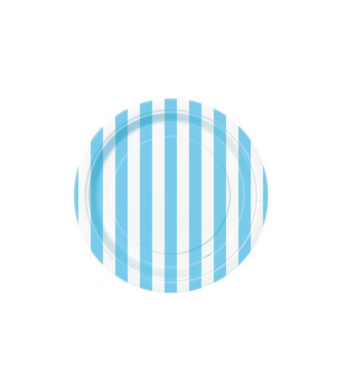 Jede Packung enthält 8 kleine himmelblaue Teller mit Streifen. Größe: 18cm