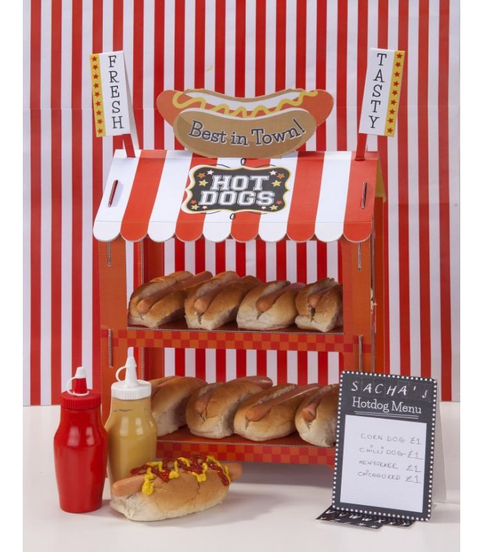 Dieser umkehrbare Ständer in Form eines Hot Dog- oder Popcorn-Stands taucht Sie in amerikanische Stimmung! Ideale Tischdekoration und unentbehrlich für Kinoabende und diverse Partys! Dieser Stand mit seinem Street Foot Look wird Sie direkt nach New York führen !!