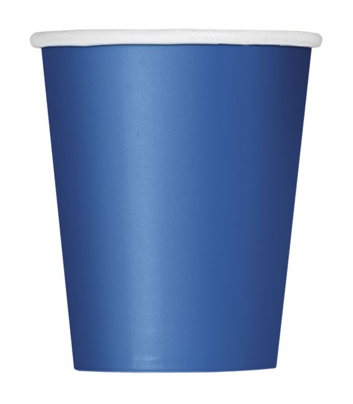 Jedes Paket enthaelt 14 Koenigsblaue Becher aus Pappe.