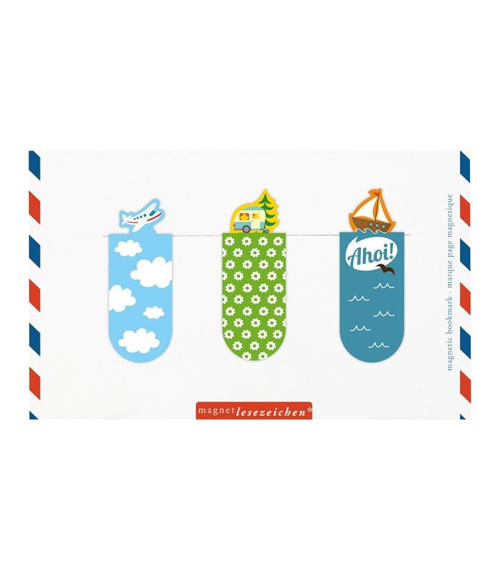 Je drei farbenfrohe Magnetlesezeichen im Set.