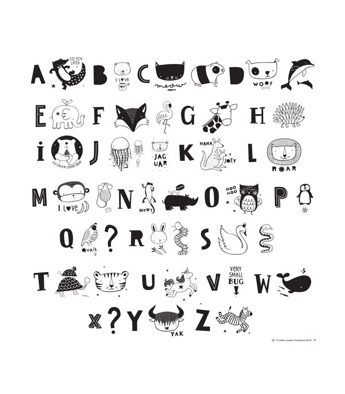 Diese ABC-Sonderausgabe besteht aus dem Alphabet und 33 süßen Darstellungen von Tieren. Eine unterhaltsame Art und Weise, mit Kindern zu spielen und ihnen Tierarten, Alphabet und Englisch zu lehren. Dieses Pack enthält Wörter und Ausdrücke in Englisch. A: See you later alligator!