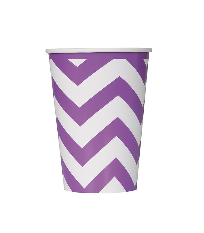 Jede Packung enthaelt 6 Becher im Chevron Muster in Lila.