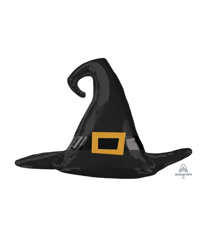 Satinschwarzer Folienluftballon in der Form eines Hexenhutes.