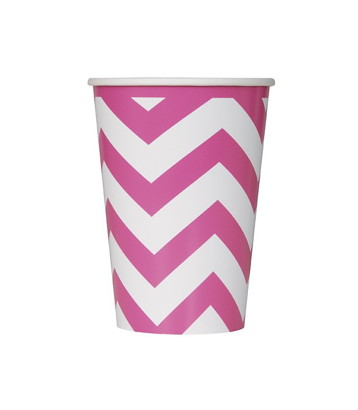 Jede Packung enthaelt 6 Becher im Chevron Muster in Magenta.