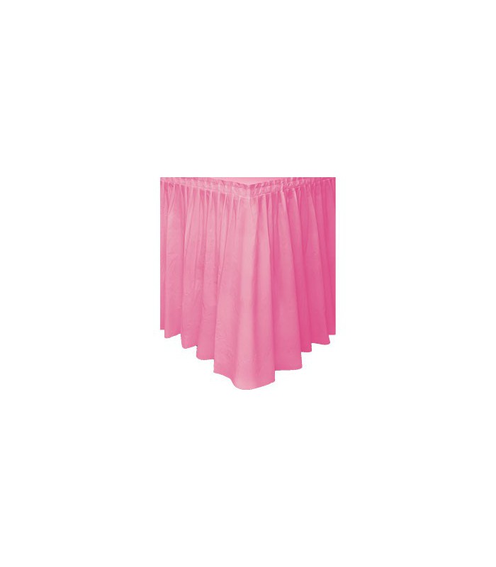 Magenta-farbiger Tischrock aus Plastik mit Klebeband auf der Rueckseite. Dimension: 73cm x 426cm