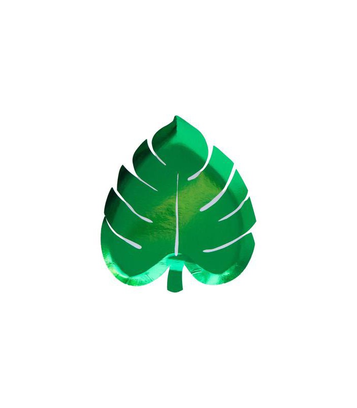 Diese palmenblattförmigen Pappteller von metallischer grüner Farbe sind ideal für eine exotische Party !