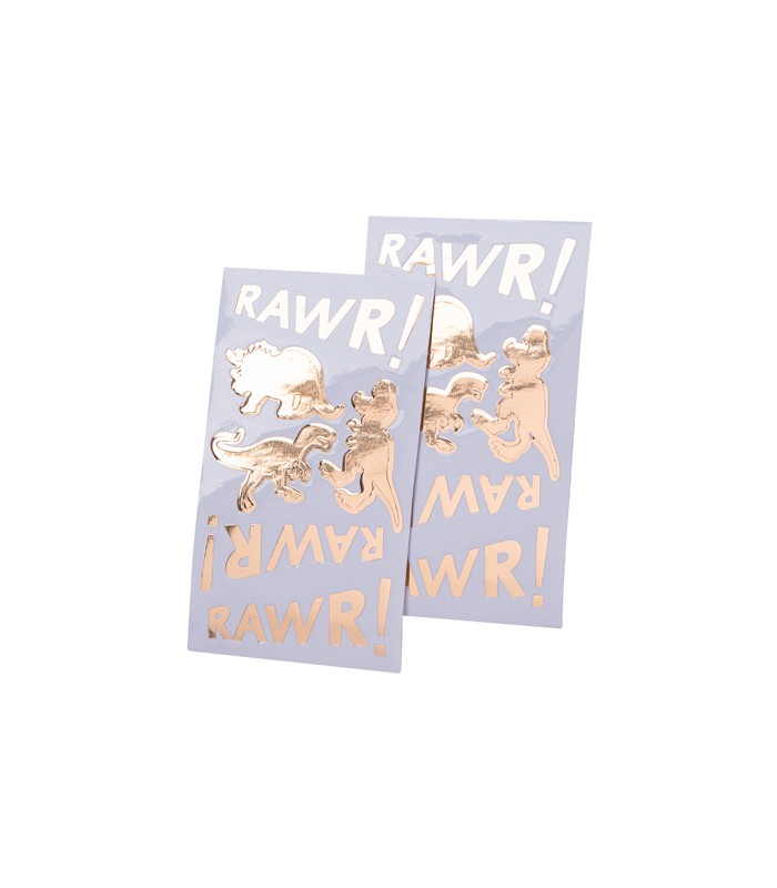 Geben Sie Ihrer Party eine dino-schicke Note mit diesen schönen goldenen Dinosaurier-Aufklebern. Diese Aufkleber sind ideal zum Dekorieren Ihrer Flaschen, für Ihre Candy Bar, oder für Ihre Einladungskarten und vieles mehr.