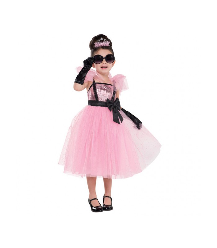 Diese Glam Princess Tutu-Mädchenverkleidung enthält ein Glamour-Kleid mit rosa Pailletten-Top, schwarze Strapsen mit flauschigen Tüll-Ärmeln und einen Rock voller rosa Tüll. Die zarte herzförmige Plastik-Tiara enthält ein gekräuseltes rosa Zierband, das mit dem Kleid koordiniert. Schwarze seidige Handschuhe und eine große Retro-Sonnenbrille sorgen für einen perfekten Prinzessin-Look !