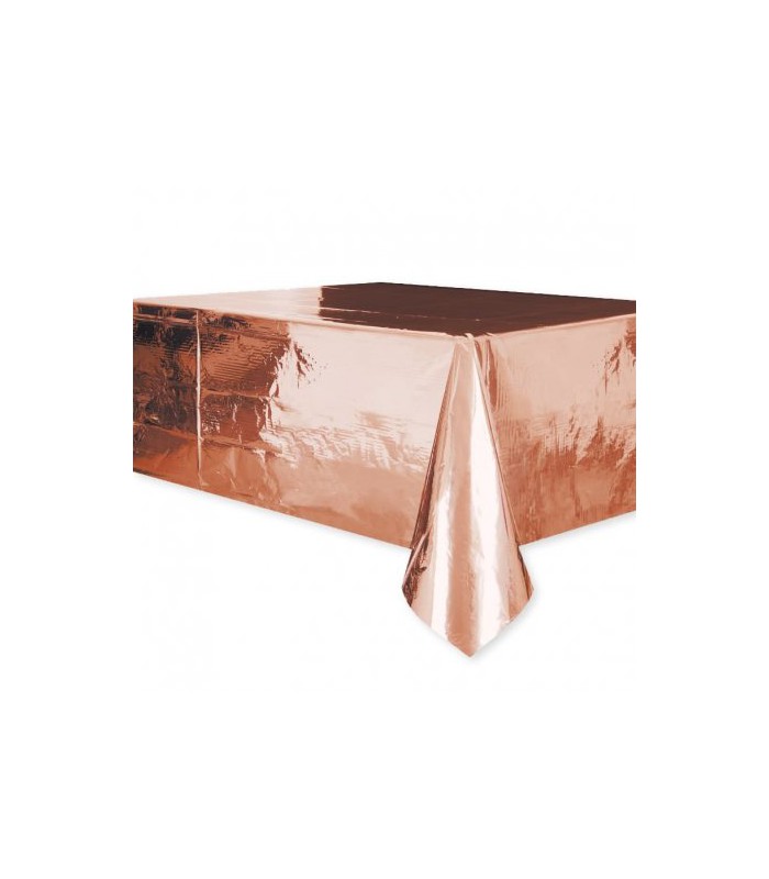 Tischdecke aus Kunststoff in Metallic-Roségold. Diese Tischdecke verschönert und bewahrt Ihren Tisch mit einem funkelnden, festlichen Hauch !