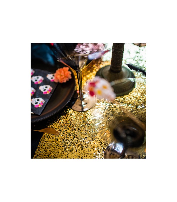 Dieser Tischläufer mit goldenen Pailletten hebt Ihren Tisch hervor und verleiht ihm eine Note von Eleganz und Opulenz. Ihre Dekoration wird funkeln und die Augen Ihrer Gäste zum Strahlen bringen!