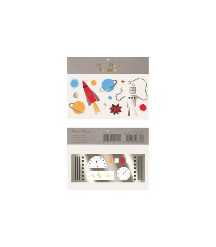 Tattoos von der Marke Meri Meri, cooles Design für Jung und Alt ! Kleben sich leicht in 30 Sekunden, halten lange und können mit Seife entfernt werden !