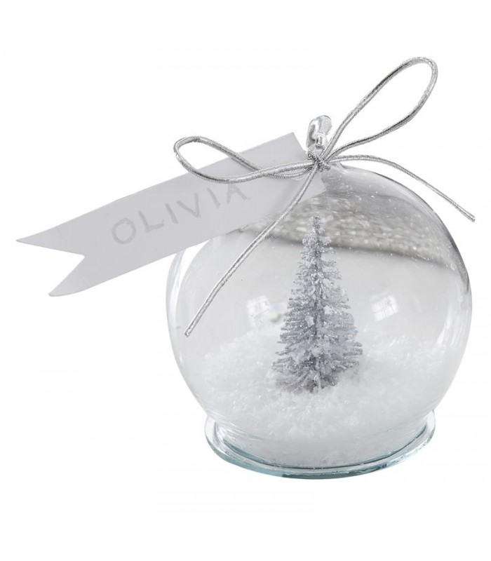 Decken Sie einen stilvollen Weihnachtstisch mit diesen Schneekugeln mit Silbertanne versehen mit einer Platzkarte. Eine großartige Möglichkeit, um sicherzustellen, dass Ihre Gäste den perfekten Platz um Ihren Tisch haben!