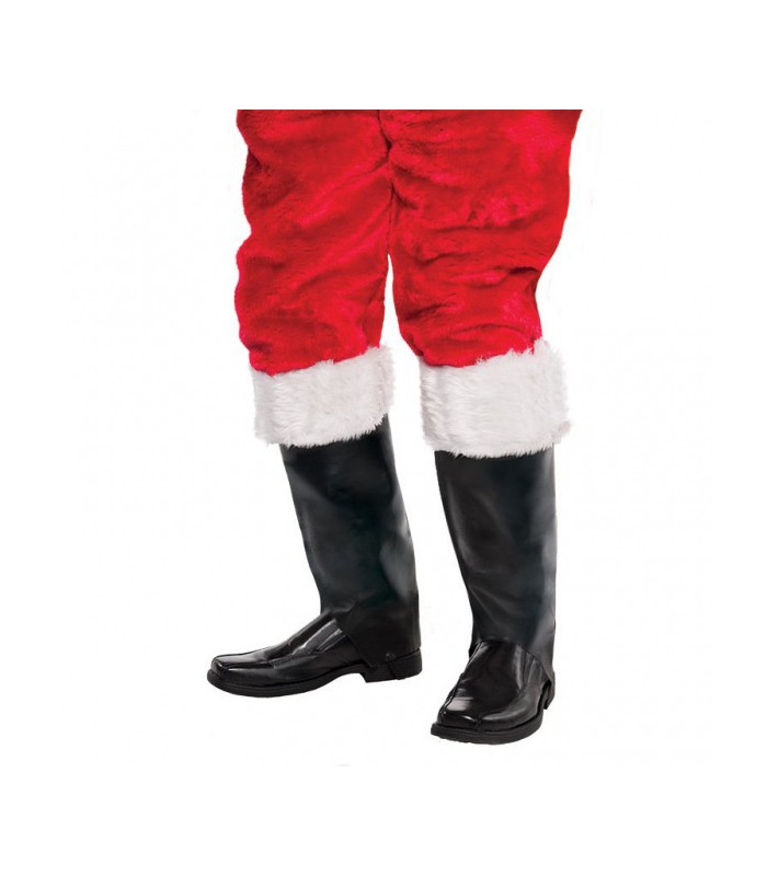 2 Weihnachtsmannstiefel-Verkleidungen Einzelgröße. Diese Stiefelverkleidungen sind aus schwarzem Vinyl mit weißen Plüsch-Manschetten. Ein perfektes Zubehör für jede Weihnachtsmann-Verkleidung !