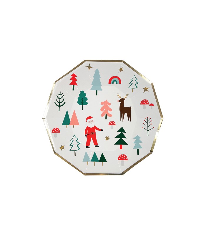 Diese Serie von 8 großen Weihnachtstellern von Meri Meri bringt eine Weihnachtsnote auf Ihren Tisch. Diese entzückenden Teller, die mit verschiedenen ikonischen Elementen der Saison dekoriert sind, werden all Ihre köstlichen Festgerichte willkommen heißen.