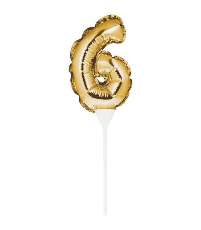 Ein goldener Ziffer-Minifolienluftballon als Kuchendekoration.