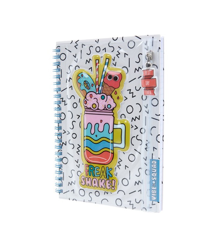 Hands up if you love freak shakes? Express your passion for sweet stuff with this yum pencil case notebook. A quirky 2-in-1 design with blue spiral binding and ‘best day ever’ swing tag, the notebook holds a soft pvc pouch to store all your tastiest stationery. Add attitude to your desk!
