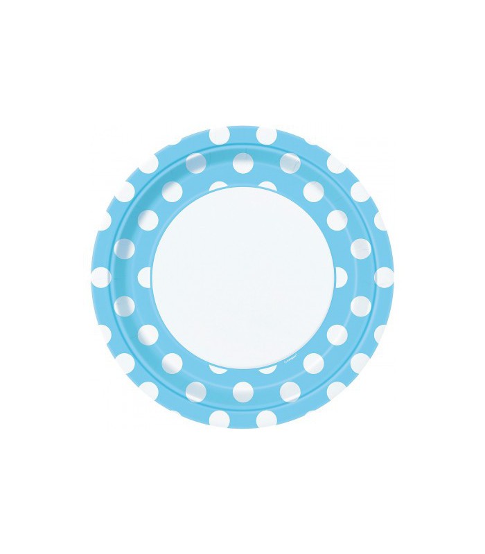 Each package contains 8 baby blue polka dots paper plates. Dimenion: 23cm