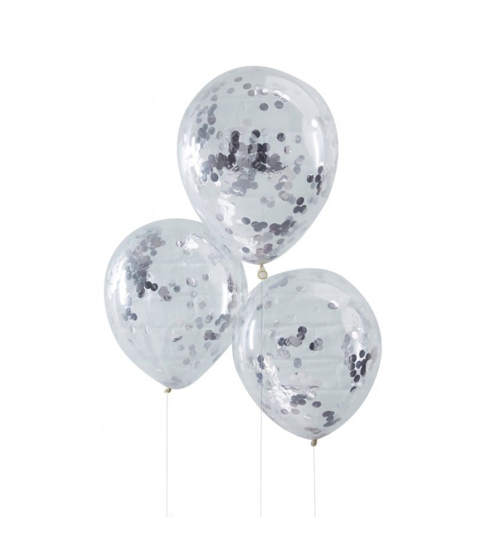 Package of 5 confetti ballons of 30cm, shipped flat.