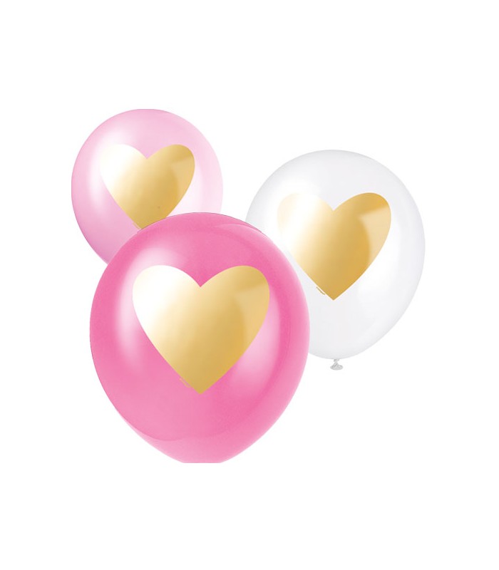 Each pack contains 6 latex balloons with gold heart embellishment on 1 side. Package of 3 colors: pink, white and rose