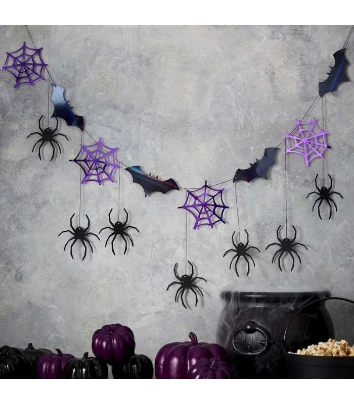 Create a spine chilling atmosphere at your Halloween party with this spooky but fabulous Spider Web and Bat Halloween party bunting to spook up your venue.