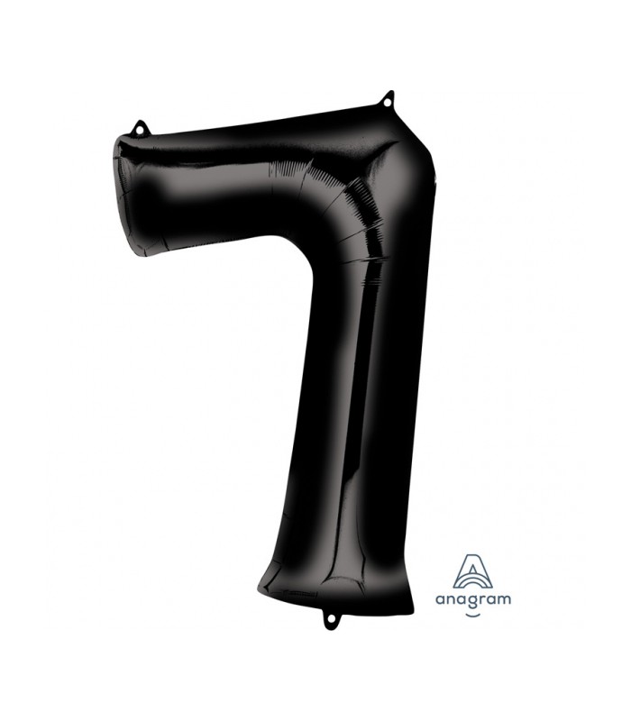 Black "Super Shape" metallic Mylar balloon that will decorate and indicate with style the number 7!
