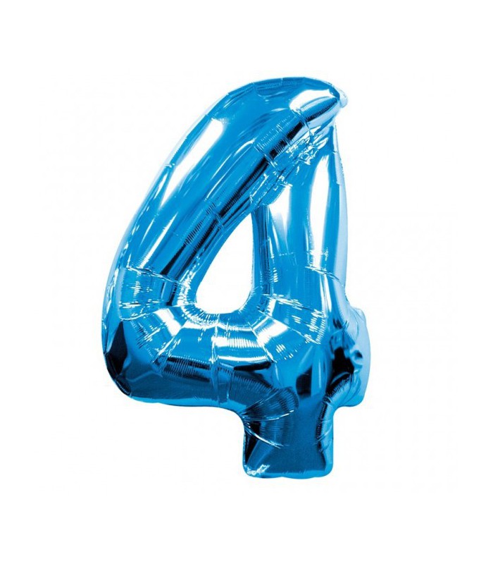 Blue "Super Shape" metallic Mylar balloon that will decorate and indicate with style the number 4!