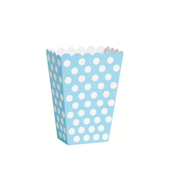 Each package contains 8 scalloped treat boxes. Wonderful to fill with all sorts of treats, candies, popcorn at your parties! Dimension: 12,7cm H x 10cm x 5cm