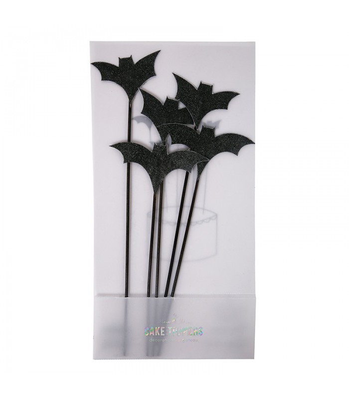 Add a touch of spookiness to your Halloween baking with these flying bat cake toppers crafted with foodsafe, encapsulated black glitter. Pack contains 5 cake toppers.