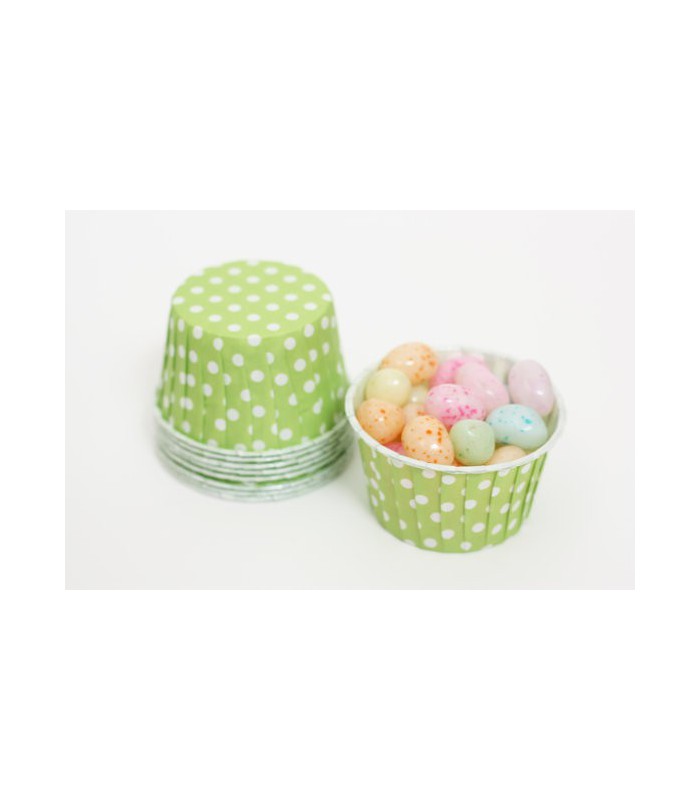 These sweet little cups are perfect to serve nuts, candies, fruits, mousse and other dainty treats to make a lovely presentation on your party table. Cups have waxed interior making them perfect for baking cupcakes. Simply place on a baking sheet and pop them into the oven (fill 2/3 to prevent spill over).