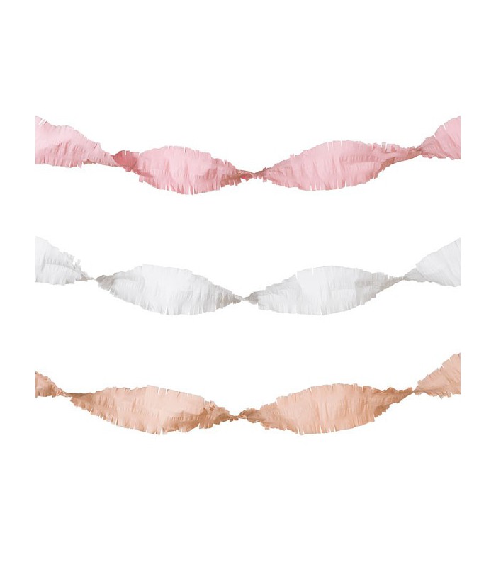 These fantastic pink, peach and white tissue paper streamers are perfect for decorating any special celebration. Simply hang up twist and mix together for maximum effect and instant flair.. This festive party piece is gorgeous when strung up on walls. It will make your special event look and feel ultra-cool.