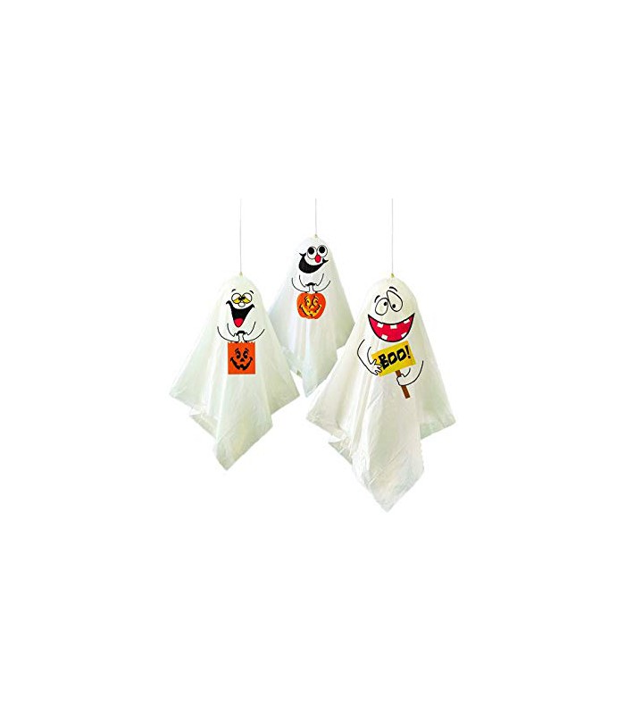 These hilarious Spooky Halloween Ghost Hanging Decorations will look fab inside our outside of your Halloween event. This set includes: 3 hanging ghost bags, 3 balloons and 3 twist ties, fantastic prop! Each ghost measures approximately 90cm.