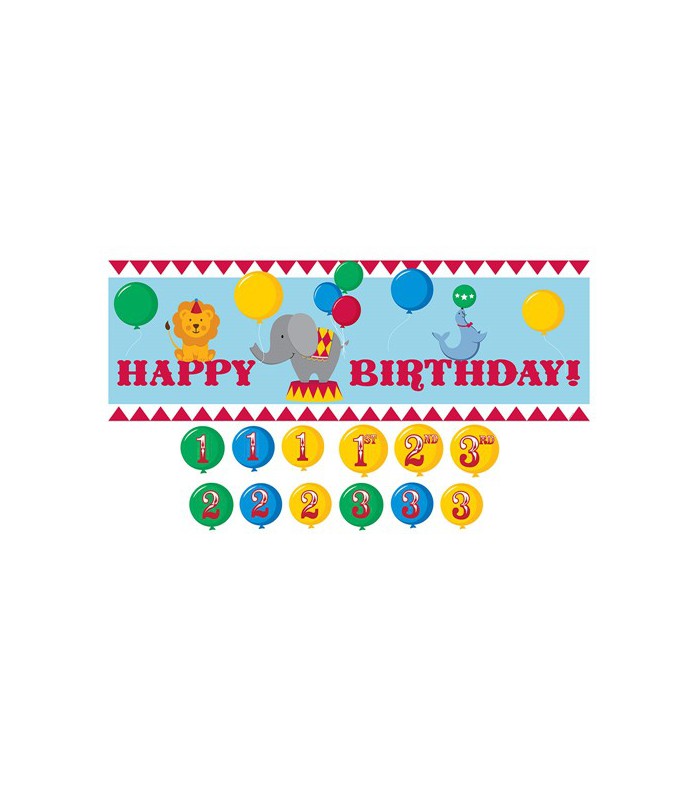 This Circus wall banner includes stickers to personalise with your guest of honor's age!Dimension: 152cm x 50cm