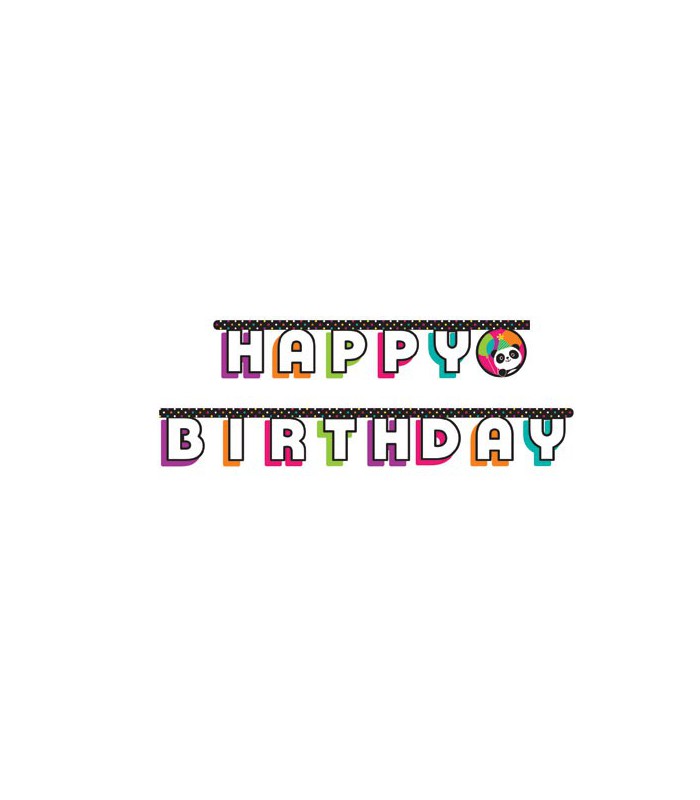"Happy Birthday" banner with our cute panda. This is fantastic to hang over an entrance or on the wall of your party room. A splendid way to welcome your guests