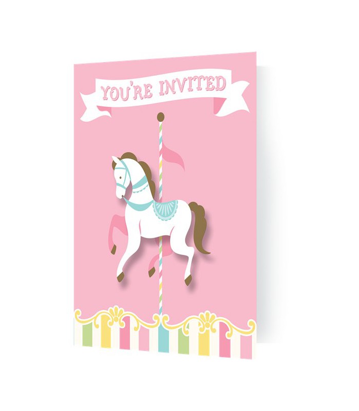 Each package includes 8 Carousel Invitations and 8 envelopes.