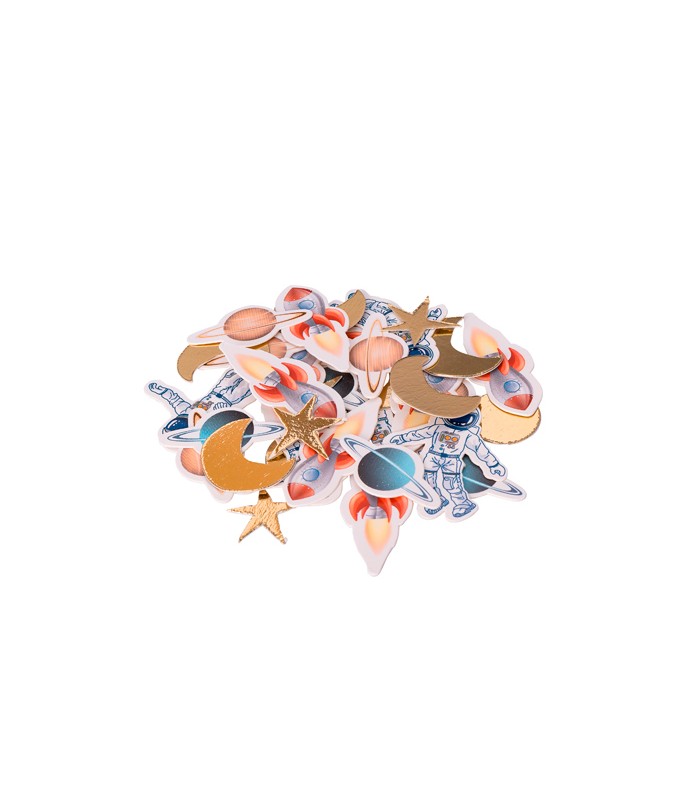 Your little astronaut will get excited to see that the whole galaxy is at his fingertips with these incredible outer space confettis. Scatter these across the party tables, around the cake, in your piñata and sprinkle a little inside the invitation envelopes and treat bags to add some chic astro fun to your party! 3, 2, 1 Blast Off to a super galactic party!