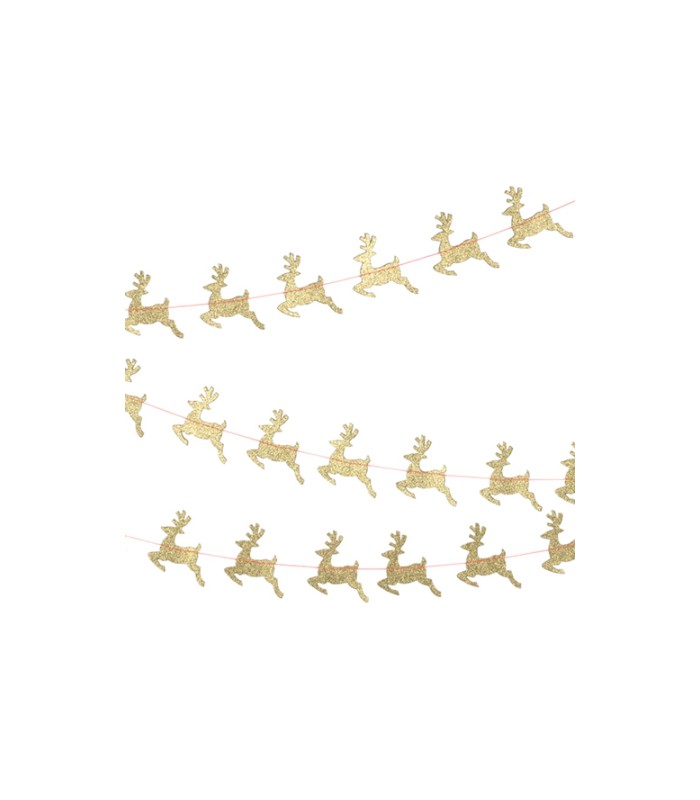 A pretty garland that will add sparkle and joy to your party with its row of golden reindeers suspended on a cotton thread.